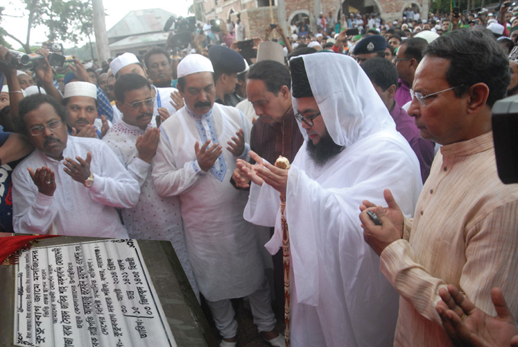 ভিত্তিপ্রস্তর স্থাপনের আগে বিভিন্ন এলাকা থেকে আসা ও অত্র এলাকার ভক্ত-মুরিদের অংশগ্রহণে মুখরিত হয়ে ওঠে। এত মানুষ তবু কোথাও কোনো উঁচু শব্দ নেই। একটু পরেই দরবারের বর্তমান মসজিদে জোহরের আজানের ধ্বনি ভেসে উঠলো। আজান শেষে মাইকে ঘোষণা এলো, সবাইকে অজু করে মাঠে নামাজে যাওয়ার জন্য। বিশাল মাঠ, যেই স্থানে মসজিদ নির্মাণ হবে। সেখানে পাটের চট বিছিয়ে দেয়া হয়েছে, তার উপরে সবাই একই জামাতে ক্বেবলাজান হুজুরের সঙ্গে নামাজ আদায় করলাম। দুপুর বেলা কড়া রৌদ্র আকাশের দিকে তাকালাম দেখি কোথাও তেমন মেঘ নেই। শুধু একফালি মেঘ পূর্ব পশ্চিম দিকে আড়াআড়ি হায়ে আছে। দেখতে প্রায় চারকোণা, মঞ্চের ঠিক পিছনে দক্ষিণে স্থীর হয়ে আছে, এরপর অনেক সময় ধরে লক্ষ্য করছি। হাল্কা বাতাসও উড়ছে কিন্তু মেঘ সরছে না। সুন্দর মনোরম পরিবেশ, মাইকে ভেসে আসছে অনুষ্ঠানের সঞ্চালক কুতুববাগ মোজাদ্দেদিয়া বাণী প্রচার কমিটির সাংগঠনিক সম্পাদক এ্যাড. মীর্জা মাহাবুব বাচ্চু, তিনি বিনীতভাবে ক্বেবলাজান হুজুর মঞ্চে আগমনের আগাম বার্তা জানিয়ে দিচ্ছেন। আশেক-জাকেরেরা দুইপাশে সারিবদ্ধ হয়ে দরবার থেকে শুরু করে মঞ্চ পর্যন্ত অতি আদব ও শৃংখলার সঙ্গে দাঁড়িয়ে অপেক্ষা করছেন। এরইমধ্যে ক্বেবলাজান হুজুর বিশিষ্ট ভক্ত অতিথিদের নিয়ে ফুলে ফুলে সাজানো মঞ্চে আসন গ্রহণ করেন।