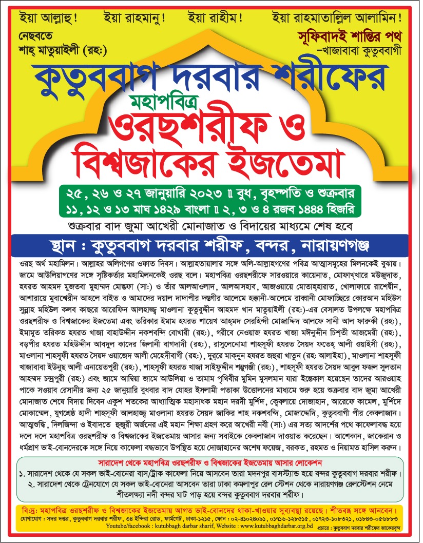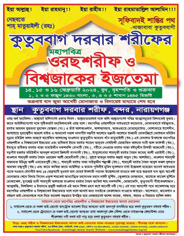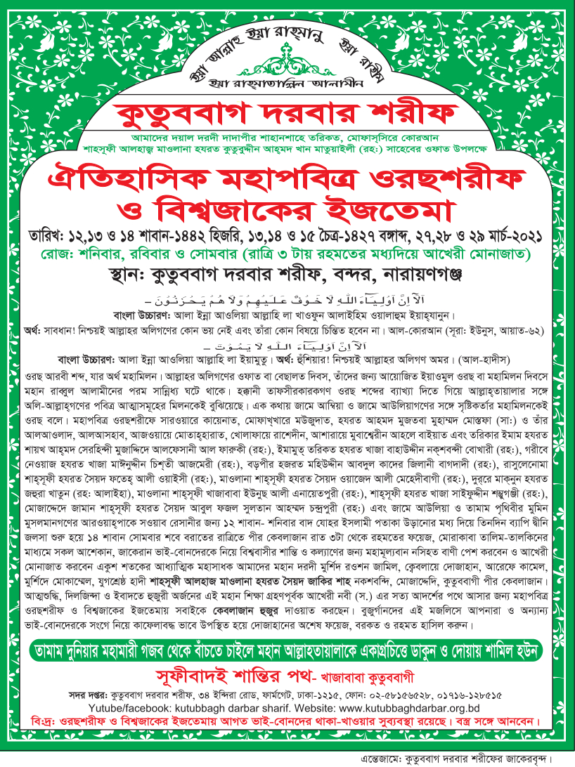 দৈনিক ইত্তেফাক পত্রিকার ধর্মচিন্তা বিভাগে ২২-ফেব্রুয়ারি-২০১৯ তারিখে খাজাবাবা কুতুববাগী কেবলাজান হুজুরের একটি সাক্ষাতকার প্রকাশিত হয়েছে। সাক্ষাতকারটি নিম্নে দেওয়া হল। ইত্তেফাক পত্রিকায় দেখুন